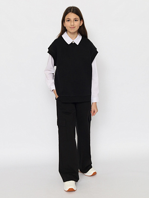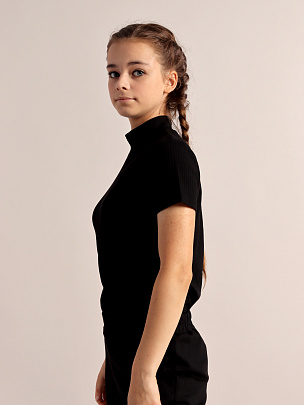 Футболка для девочки с коротким рукавом. Вырез горловины круглый, окантован бейкой из основного полотна.