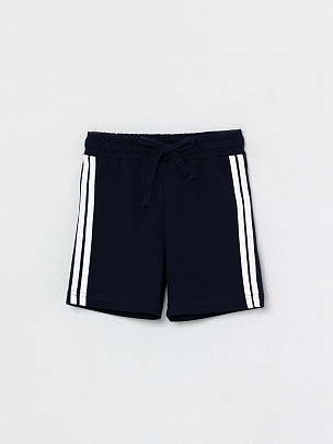 Шорты для мальчика из кулирной глади повышенной плотности. Верх шорт обработан притачным поясом из основного полотна, внутрь вставлена резинка и шнурок. На передних половинках расположен карман. Нижняя часть переда декорирована принтом.