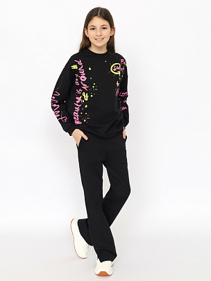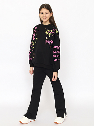 Джемпер для девочки с трендовым принтом "Красота вокруг, будь творческим, вдохновляй", выполнен из мягкого футера на основе хлопка, который прост в уходе, хорошо пропускает воздух и комфортен в носке. Крой оверсайз с заниженной линией плеча не сковывает движения, позволяя ребенку быть активным. Модель дополнена круглым воротником и длинными рукавами. Горловина, манжеты и низ оформлены рельефной резинкой.