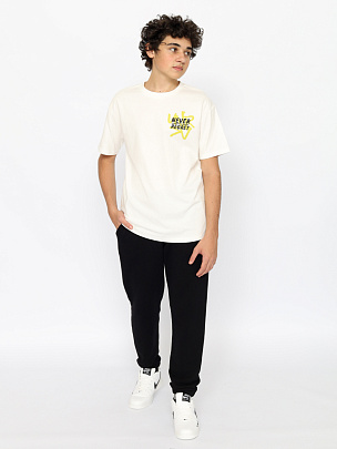 Футболка прямого силуэта длиной по линию бедер. Короткий рукав. Круглая горловина обработана узкой притачной обтачкой из рибаны с эластаном. Полочка декорирована принтом "единственный экземпляр".
