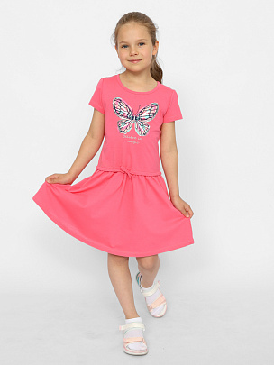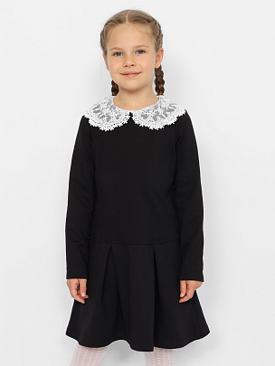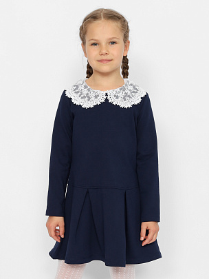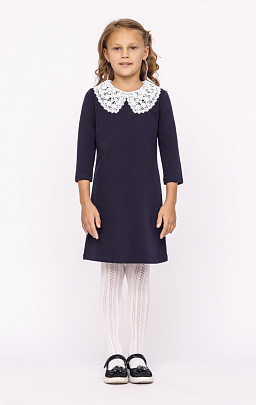 Платье для девочки с втачными рукавами 3/4. Воротник вязанный, отстегивающийся. Спинка со средним швом, в верхней части которого обработана застежка на пуговку.