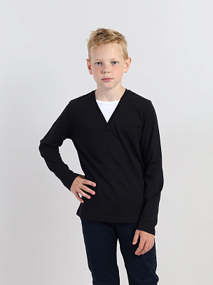 Рубашка-поло для мальчика. Рукава с манжетами. Модель с длинными рукавами и отложным воротником. Спереди застежка на пуговицы.