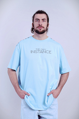 Футболка с коротким рукавом. Горловина круглая, обработана узким воротником из полотна с эластаном. Перед оформлен принтом.