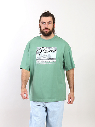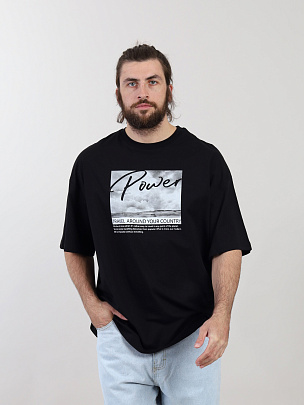 Футболка с коротким рукавом. Горловина круглая, обработана узким воротником из полотна с эластаном. Перед оформлен принтом.